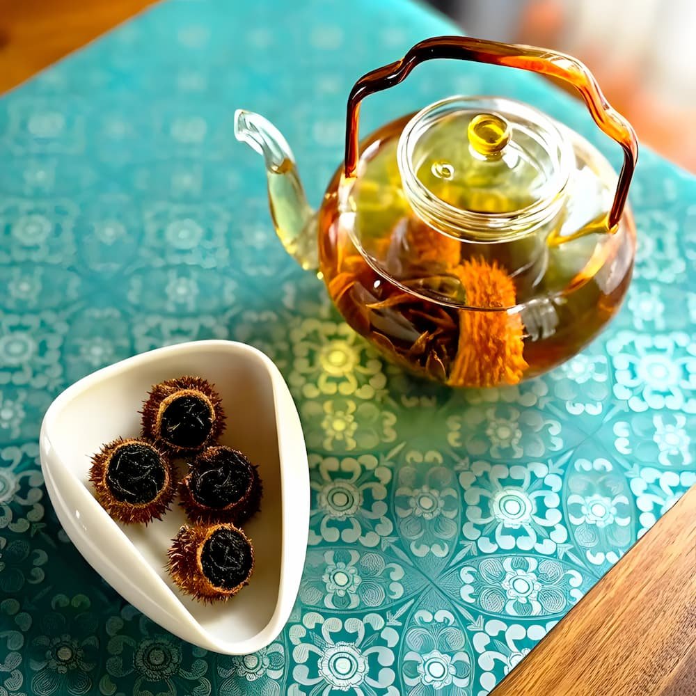 • Premium & Handcrafted: Whole, hollowed Chestnut Rose fruits are carefully hand-stuffed with smooth, authentic Yunnan black tea.