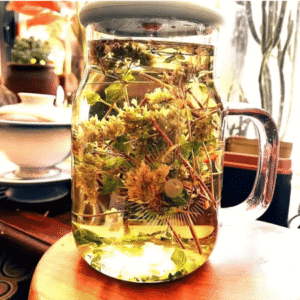We use Xiangru (Mosla chinensis) sourced from Yunnan’s high-altitude mountain areas. After basic cleaning, it’s gently dried with minimal processing (sun- or air-dried) to preserve the herb’s natural fragrance. The brew is clear pale-yellow, clean and refreshing, with a light, easy finish.